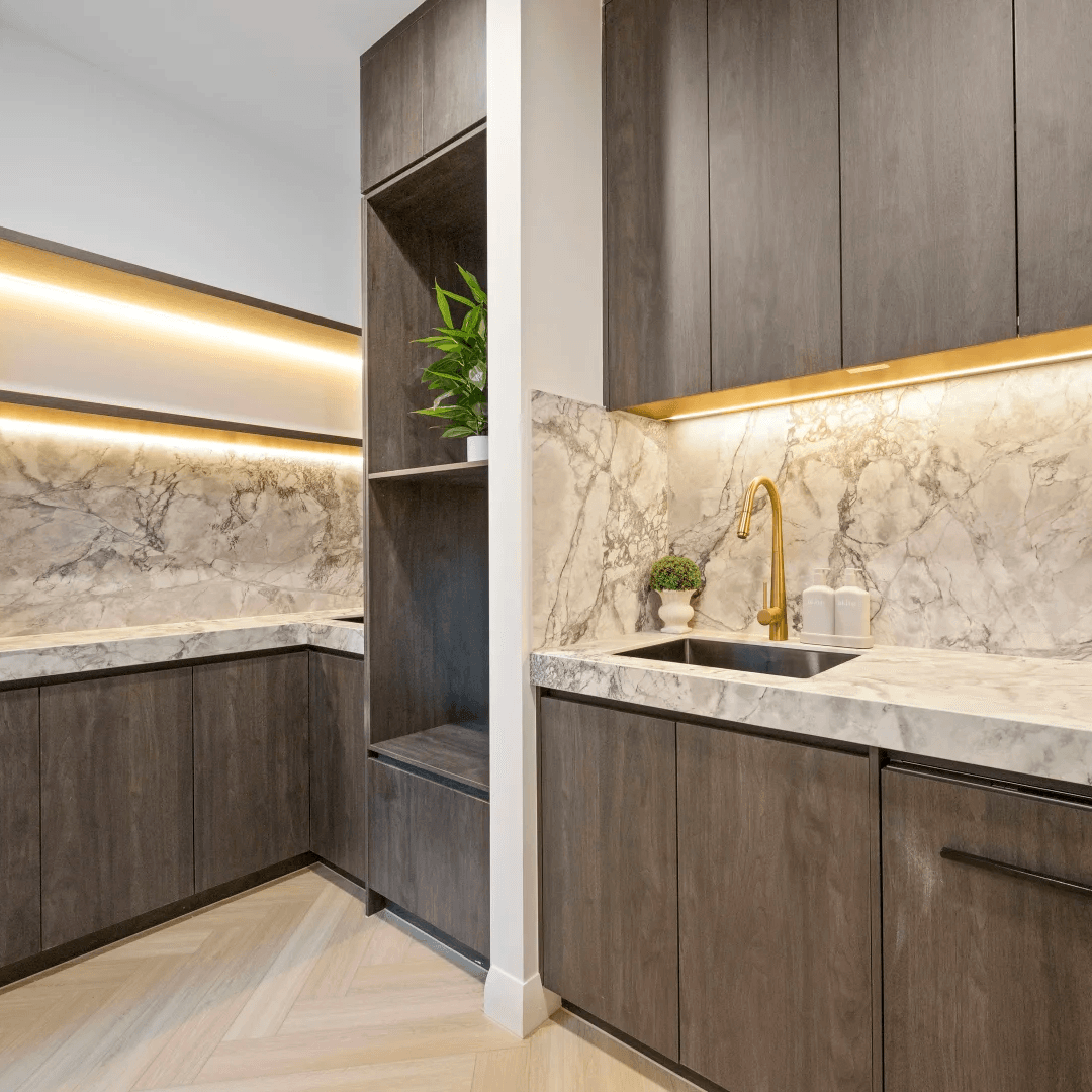 Skip the light spotting from cabinets to architectural lighting. Use continuous light beams in cabinets, wardrobes, desks, under bench or stealthy low glare functional lighting.